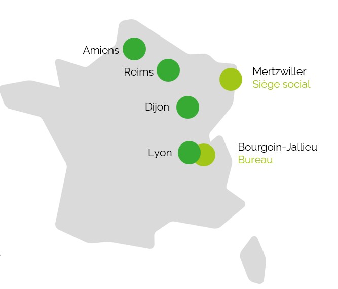 - Une équipe de 28 collaborateurs répartis entre l’Alsace et la région lyonnaise afin d’adresser toute la France