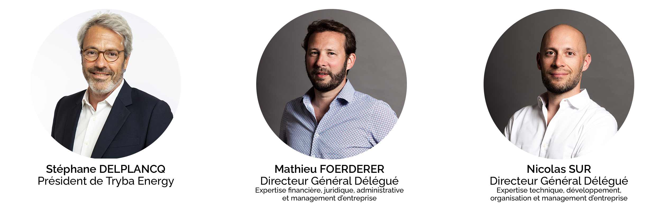 La direction générale de TRYBA ENERGY est composée de deux directeurs généraux délégués associés : Nicolas SUR et Mathieu FOERDERER.