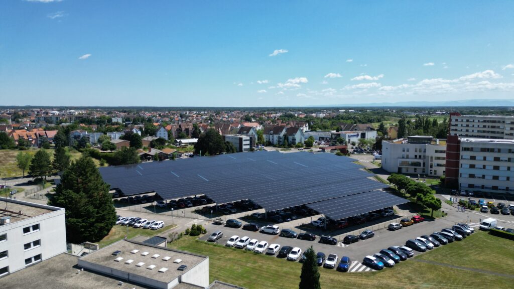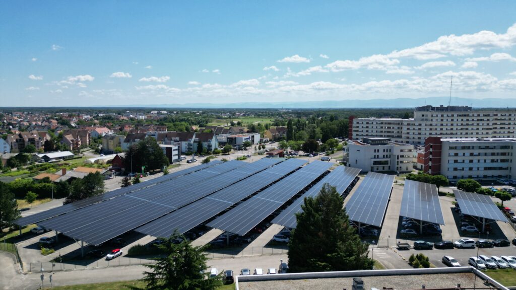Le 22 novembre 2024, le Centre hospitalier de Haguenau (Alsace) a officiellement inauguré sa toute nouvelle ombrière photovoltaïque. Porté haut la main par TRYBA® ENERGY, ce projet a vu le jour en à peine deux ans, de la toute première idée jusqu’à la mise en service. Ce sont donc 4 092 panneaux solaires bifaciaux, qui ont été installés sur 8 500 m², ils couvrent 598 places de parking, offrant aux usagers une protection bienvenue contre soleil, pluie et grêle.